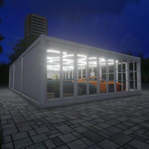 While the standard color is white, our commitment to customization enables you to personalize your structure further. Tailor the building to your preferences by adjusting window and door placements, adding a roll-up door for easy equipment access, or selecting a color scheme that seamlessly integrates with its surroundings.